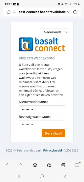 Vul uw wachtwoord twee keer in en klik op ‘Bevestig’.